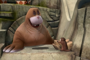 Maurice bribes the animals with candy so they'll celebrate "King Julien Day."